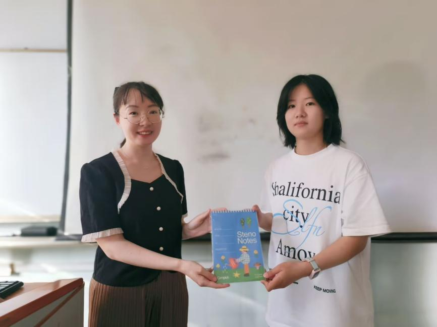 随后,活动进入第二环节——兰台书韵分享会第一期。结合专业实践实际和个人情况,蔡怡清同学从实践准备、实践内容、实践感受三个方面分享了暑期她在湖北省图书馆进行志愿服务的社会实践经历。她带领大家了解了图书编目的工作流程,并为大家着重介绍了实际图书馆编目的具体内容。她感悟到,志愿服务形式的专业实践活动也是增长专业实践经验、提升专业能力的有效途径,并且能为日常课程学习提供实践基础。分享完毕后,史雅莉老师为学生颁发分享会礼品,并鼓励学生们积极参与专业实践,提升专业能力。