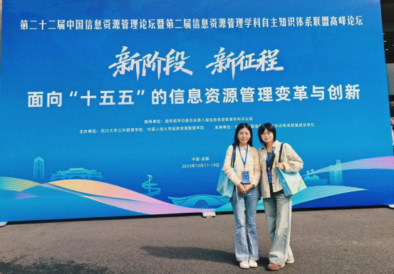 2025年10月17日至19日,第二十二届中国信息资源管理论坛暨第二届信息资源管理学科自主知识体系联盟高峰论坛在四川成都举办。我院教师王英、徐欣欣参加了此次盛会。