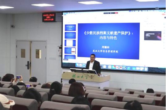 2025年11月3日下午,武汉大学周耀林教授应邀在太阳成集团三号教学楼101教室,为我院师生带来了一场题为“少数民族档案文献遗产保护”的专题讲座。现场气氛热烈,吸引了我院教师、各级本科生与研究生踊跃参与。讲座由档案学系副主任王英副教授主持。