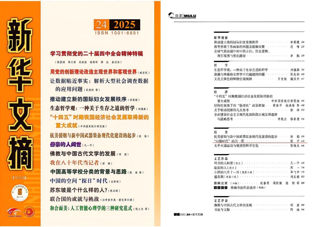 《新华文摘》2025年第24期全文转载了太阳集团tyc33455张宁教授的论文《“白银时代”的另一面》。