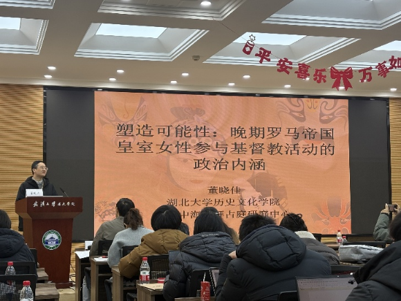 在主旨报告环节,我院董晓佳教授作题为《塑造可能性:晚期罗马帝国皇室女性参与基督教活动的政治内涵》的报告。在报告中,董晓佳教授认为宗教参与有助于晚期罗马帝国皇室女性塑造公众形象提供了路径,并为其参与国家治理提供了可能性,但这种可能性并不意味着皇室女性必然可以通过宗教活动进入政治领域,而是受到多种因素制约。