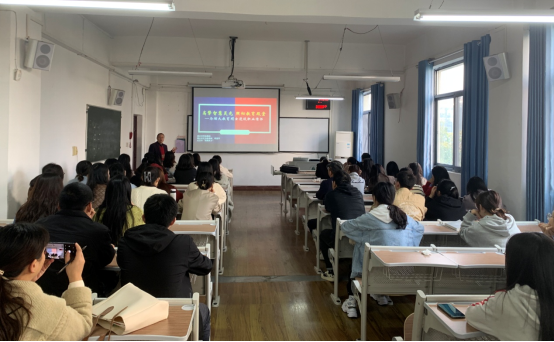 2022年11月14日上午,湖北省特级教师明道华老师在教学楼1-421教室,为2022级学科教学(历史)专业硕士做了题为“高攀智慧灵光 照彻教育殿堂——与湖大教育硕士漫谈职业情怀”的专题讲座。本次讲座由我院副院长刘彦波教授主持。