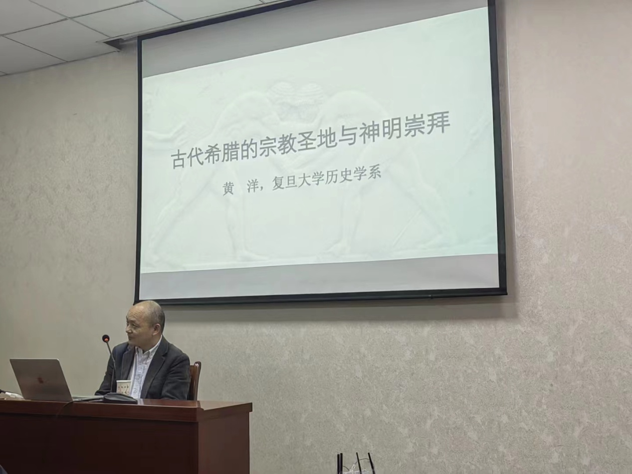 2023年4月7日下午,复旦大学历史学系主任黄洋教授做客我院“春秋讲坛”,在逸夫人文楼D1013报告厅以“古代希腊的宗教圣地与神明崇拜”为主题为我院师生带来了一场精彩的学术讲座。讲座前,学院领导黄柏权院长、刘彦波副院长和雷平副院长与黄洋教授作了交流,他们对黄教授的到来表示了热烈欢迎。讲座由雷平副院长致辞、董晓佳教授主持,我院世界史学科刘榕榕、顾蓓、刘小青等教师以及数量众多的博士、硕士研究生与本科生参加了讲座。