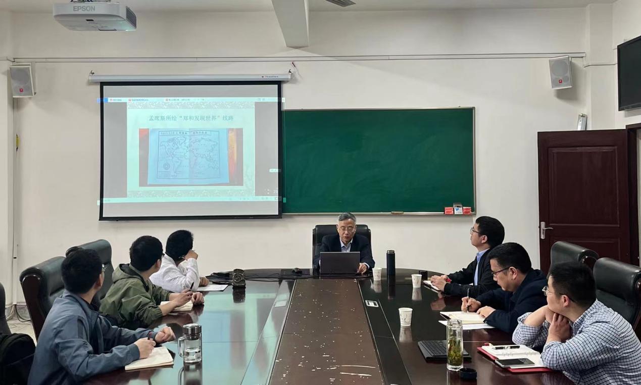 2023年3月10日上午,南京大学历史学院特聘教授、博士生导师范金民老师做客我院“春秋讲坛”第88讲,以“海上丝绸之路研究三题”为题进行了一场精彩的学术演讲。讲座由副院长雷平教授主持,中国史学科部分教师和研究生同学参加了此次讲座。