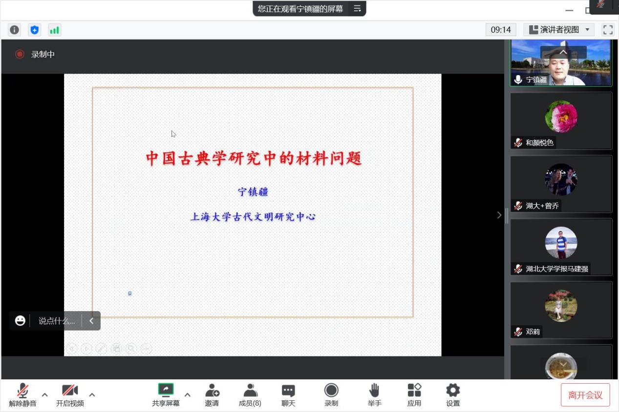 在古书流传的历史脉络中,宁镇疆教授立足当下的历史学研究,认为新材料对古典学带来的新认识最为值得重视。关于“新材料”与“新知”,宁教授围绕关于“共和”的名义、“黔首”的年代、秦人族源考证、“行李”义涵流变、《诗经》“舍命”新考、“繄”字释义、诗序和诗旨新探等内容展开了精彩的演讲,充分展示了材料范围扩大带来的新问题以及旧问题的新解释。此后在与中国史师生互动的环节中,宁镇疆教授从方法论的角度,进一步强调了“知识考古”的重要意义,并认为古典学研究应当具备多学科、多方面的知识素养,以更好地理解材料范围扩大带来的对历史学知识的反思。