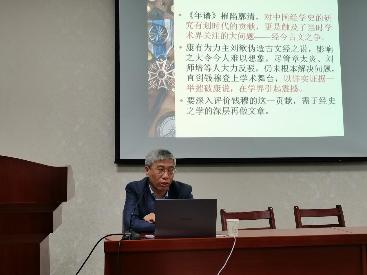 讲座分为“《刘向歆父子年谱》的学术贡献”“顾颉刚与钱穆的争论”以及“学术情怀与学术精神”三个部分。首先,李帆教授由康有为的《新学伪经考》讲起,肯定其在思想史与学术史的不同定位,进而引出钱穆撰《刘向歆父子年谱》的缘由及其学术贡献,指出《年谱》摧陷廓清,对中国经学史的研究有划时代的贡献;同时,《年谱》把经学问题视为史学问题,“于史学立场,而为经学显真是”,在深层次上解决了两方面问题。接着,李帆教授指出由《年谱》所引发的钱顾之辩,核心问题虽仍是经今古文问题,但从争论双方所持立场和主张看,已非传统的经学之争,而是现代意义上的史学之争。双方所信服者都是各自所认可的历史考证结果,即便这一结果与今古文家的某些结论相合,但基本着眼点已是大相径庭。最后,李帆教授从钱、顾之争总结了五点学术情怀与学术精神作:一、学术乃天下之公器:学者秉此公器以宽广胸怀追求学术真理;二、学术上的不盲从和独立思考精神:敢于挑战权威,坚持独立思考;三、破除门户之见,一以学理为归:从学理出发,以现代学者的学术训练探讨问题,不带或少带门户之见;四、平等讨论、自由协商:双方以平等态度、自由协商精神讨论问题,尤其是顾不以势压人,体现了现代学者的时代精神;五、时代氛围和学术风气:有自由讨论的时代氛围和学者间正常学术批评的风气(批评与反驳),对今日学风有诸多启示。