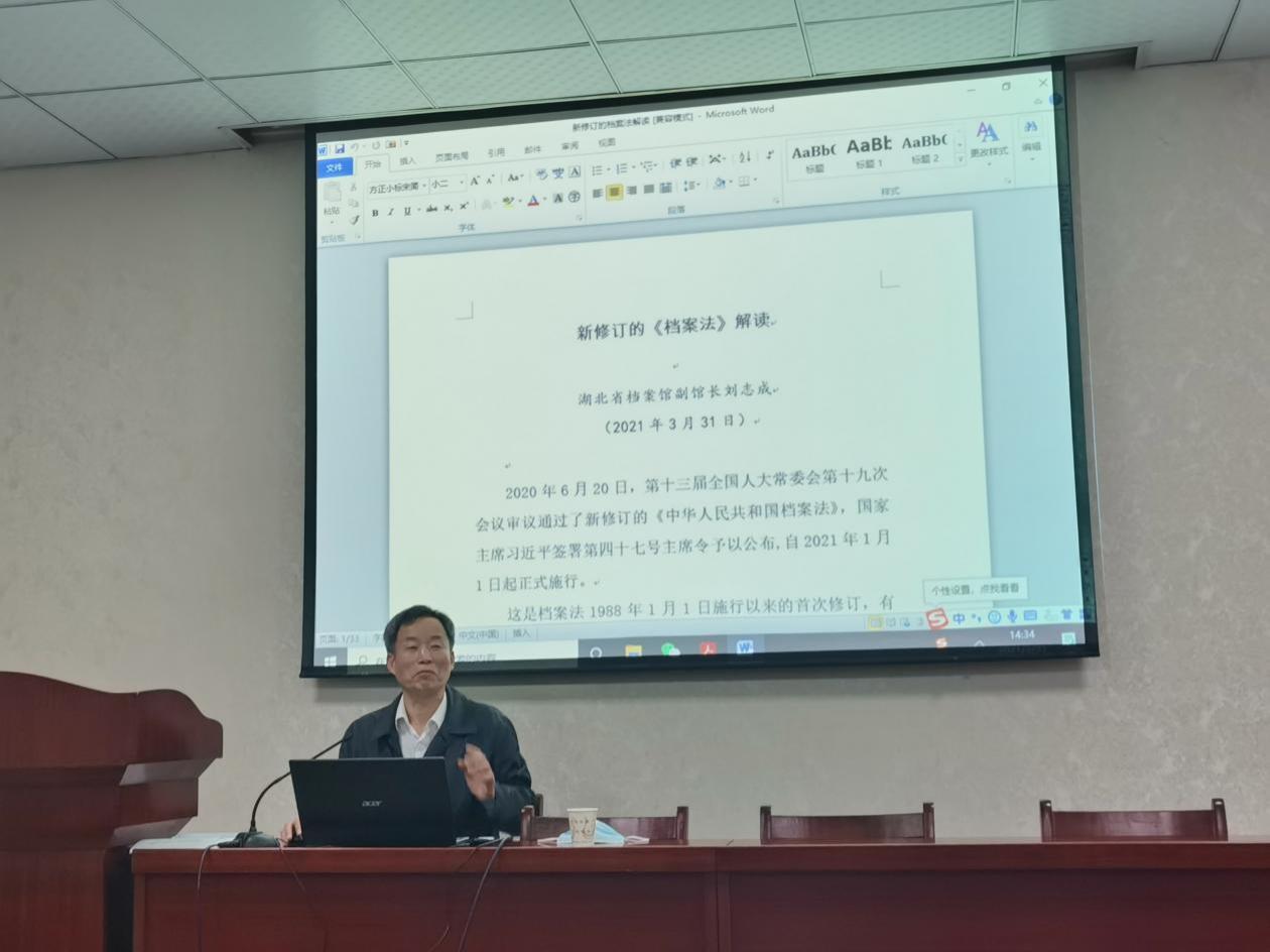 3月31日下午,湖北省档案馆刘志成副馆长莅临我院逸夫人文楼D1013教室,以新修订的《中华人民共和国档案法》实施为契机,为师生们作了一场精彩的报告。学校副校长肖德在报告开始前会见刘志成馆长并表示欢迎。太阳集团tyc33455院长黄柏权教授出席报告会并致词,热情欢迎刘馆长来院讲学。档案学专业教师、全体研究生以及部分本科生参加了报告会。