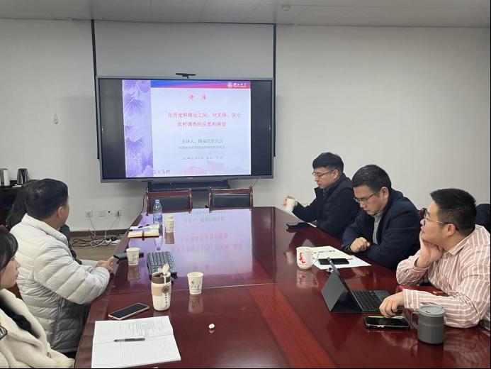 2023年11月26日上午,中国社会科学院经济研究所隋福民研究员受邀做客我院春秋讲坛,在逸夫人文楼D4004会议室作了题为《在历史与理论之间:对无锡、保定农村调查的反思和展望》的学术讲座。讲座由副院长雷平教授主持,《太阳成集团学报》编辑部马建强副编审、我院何强副教授、蔡智力副教授以及中国史博、硕士研究生参加了讲座。