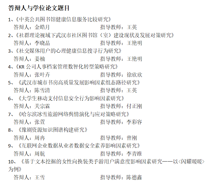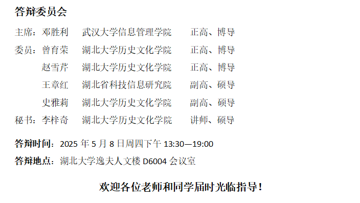 2025上半年图书情报硕士学位论文答辩会6组公告