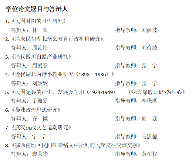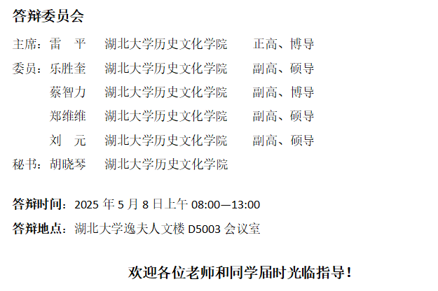 2025上半年中国史(近代史&专门史方向)硕士学位论文答辩会1组公告