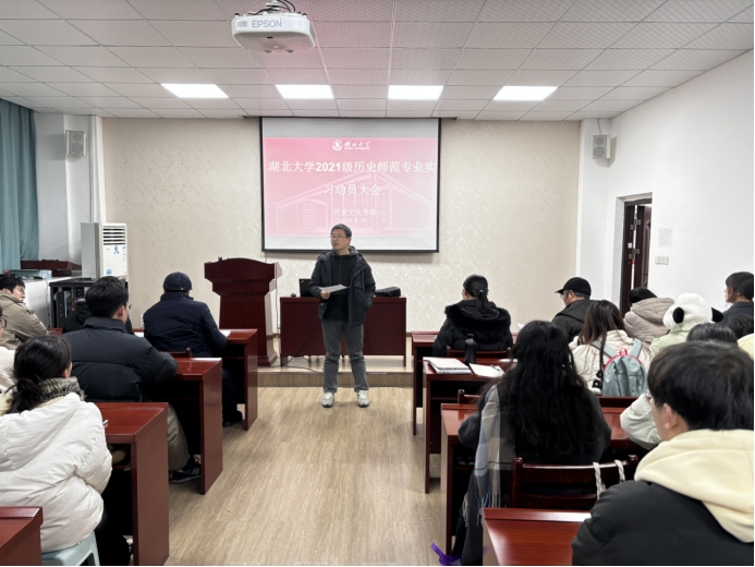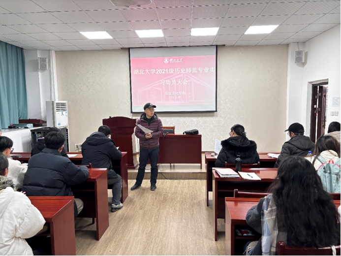 为做好即将开始的教育实习工作,2024年2月28日下午学院在院1013会议室举行2021级历史学(师范)专业实习动员大会。2021级历史学(师范)专业全体学生参加此次会议。副院长刘彦波、历史系主任张宁、副主任刘馗、班主任刘小青、刘天乔、各实习小组指导教师以及2021级历史学(师范)专业全体同学参加动员大会。