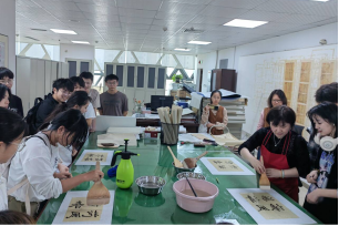 3.修裱室:在此环节工作人员给同学们演示并讲解了古籍档案的修裱过程,并且用自制书法作品代替档案,让学生们自己亲自深度体验修裱环节,在互动中学习到有关知识,体验到该工作的重要性和魅力。