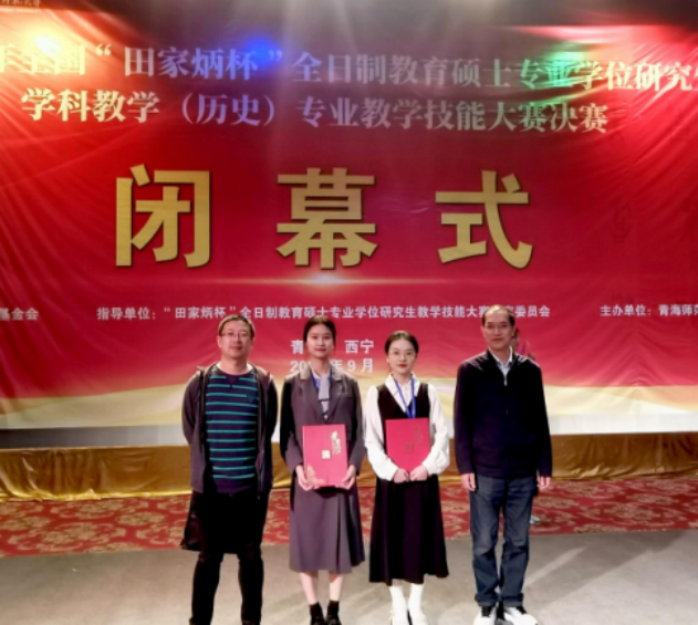 2024年9月20日至23日,在青海师范大学举办的全国“田家炳杯”全日制教育硕士专业学位研究生学科教学(历史)专业技能大赛上,我院2023级学科教学(历史)专业研究生杨贝同学荣获二等奖,刘红梅同学荣获三等奖,刘彦波老师获得优秀指导教师奖。