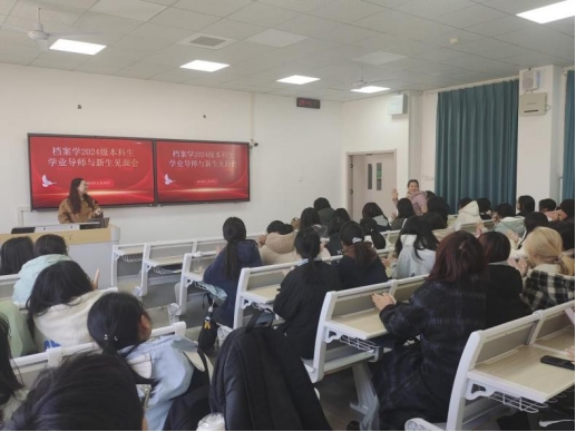 为加强师生相互了解,帮助学生明确学业规划,开启大学生活的崭新篇章,2024年11月28日档案学系举办了2024级本科新生与学业导师见面会。此次见面会旨在营造积极向上的学习氛围,激发学生的学习热情,为学生的全面发展奠定坚实基础。