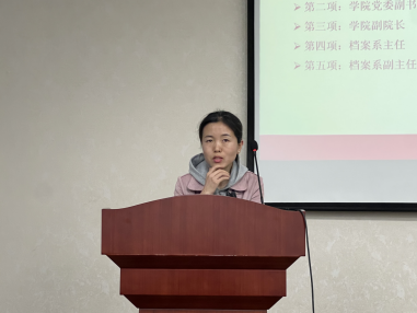 余芳副书记肯定了档案系学生们在学习方面的积极性与主动性,首先提醒学生们在实习中要注意安全。其次及时转化、做好简历,将实习经历量化为简历数据,提升简历含金量,学会归纳艺术化包装。最后,快乐成长、学会求助,鼓励学生们在遇到问题时及时寻求老师帮助,保持良好心态,不断前行。