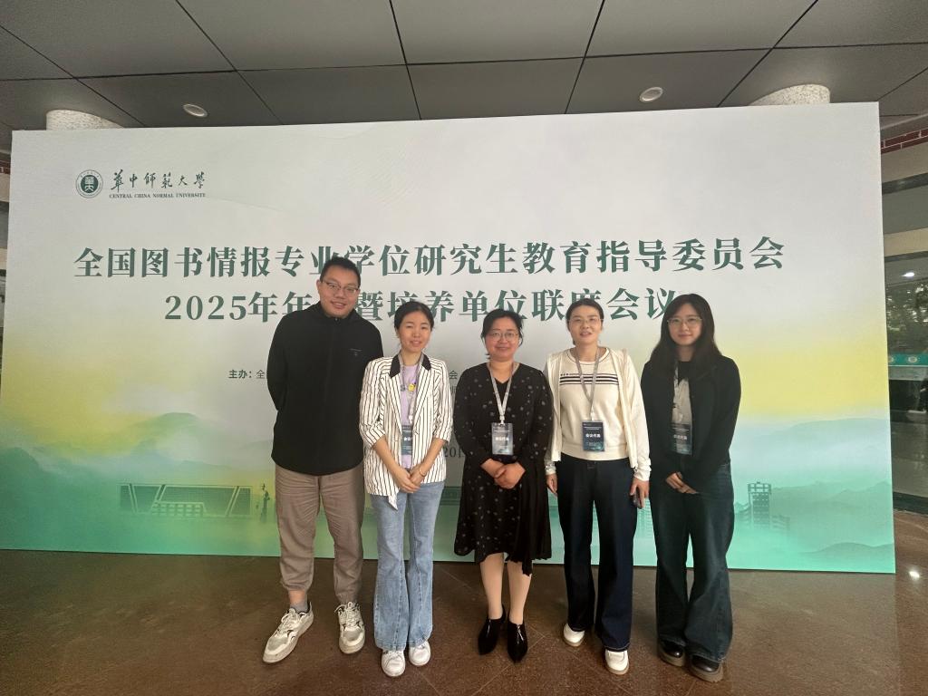 近日,全国图书情报专业学位研究生教育指导委员会2025年年会暨培养单位联席会议在武汉举办,全国所有图书情报培养单位共同讨论提升图书情报专业人才培养质量,我院图书情报专业导师团队赵雪芹教授、王英副教授、吕文婷副教授、李青维老师、李梓奇老师参加会议。