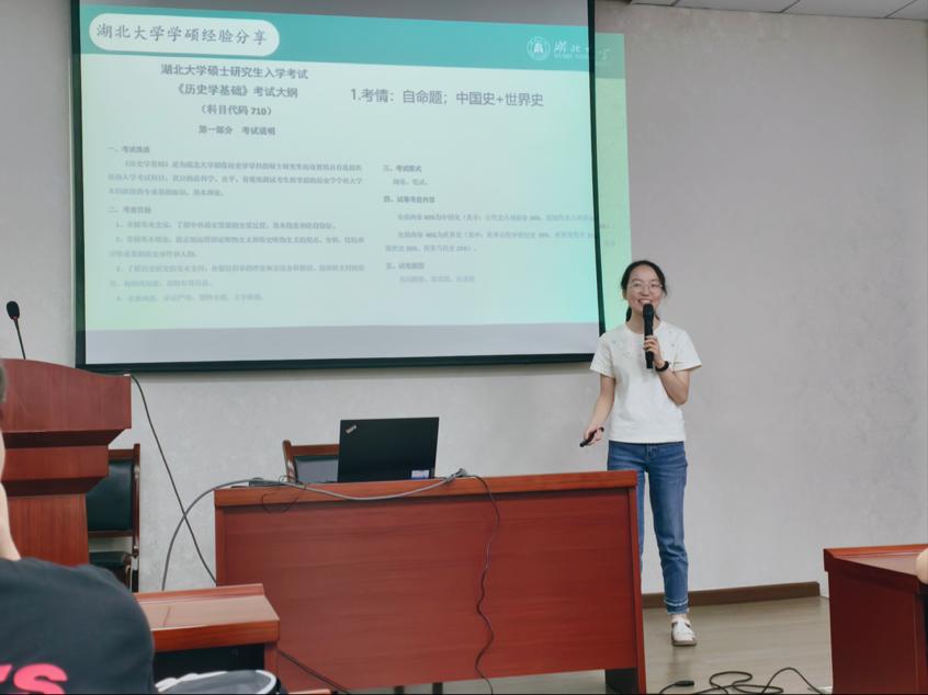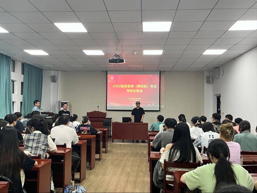 6月8日下午,我院2022级历史学(师范类)专业考研分享会在逸夫人文楼D1013举行。此次分享会由班主任刘广丰老师、何强老师主持,历史系主任张宁老师、2021级历史学(师范类)专业车畅、石婉琦、宋绍菲3位同学参加本次分享会,2022级历史学(师范类)专业全体学生参会。
