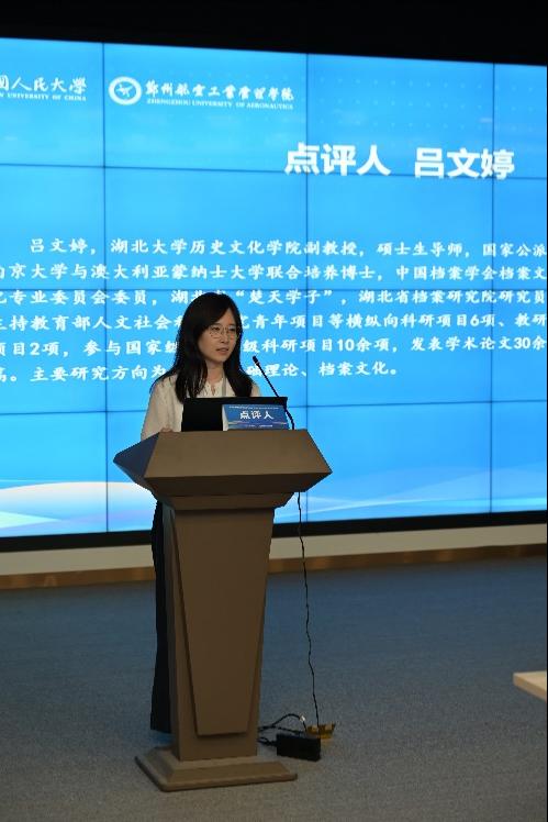 论坛期间,赵雪芹教授担任第一分会场主持人及点评人,吕文婷副教授担任第二分会场点评人。徐欣欣讲师在青年学者沙龙环节以《从档案学话语角度看学术与实践的关系》为题参与对谈。吕文婷副教授提交的论文《面向国际传播的中国档案学话语建设:理论框架、传播现状与前进方向——基于建构中国自主的档案学知识体系的视角》经评选获论坛三等奖。
