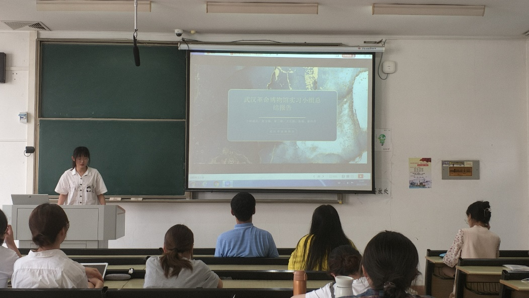 会上,文物与博物馆学1801班四位实习小组代表围绕实习所在博物馆概况、工作职责、管理规范等方面分别展示了各自小组在武汉市四所博物馆实习的经历和经验。整个汇报不仅内容丰富且各有侧重。参加实习的李佳怡分享了该小组成员在湖北省博物馆观摩并亲手修复文物的宝贵经历;第三组代表上官云茜着重介绍了小组成员在辛亥革命博物馆的不同分工,还有各成员给予学弟学妹的建议。