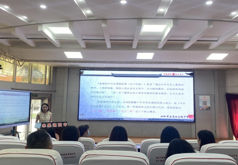 2021年9月24日上午,在学科教学(历史)专业研究生负责人刘彦波教授安排下,太阳集团tyc334552020级30多名研究生参加了主题为“研训一体,教学互动”新教材单元主题教学培训会。本次培训会在水果湖高级中学举行,由武昌区历史学科教研员蒲莉萍老师组织安排并作主题培训,黄鹤英才名师工作室主持人、历史特级教师、正高级教师明道华应邀出席并作报告,培训会由水果湖高级中学历史教研组组长胡继芳老师主持。
