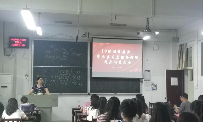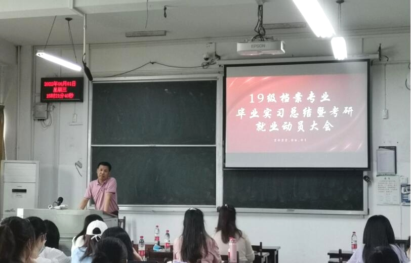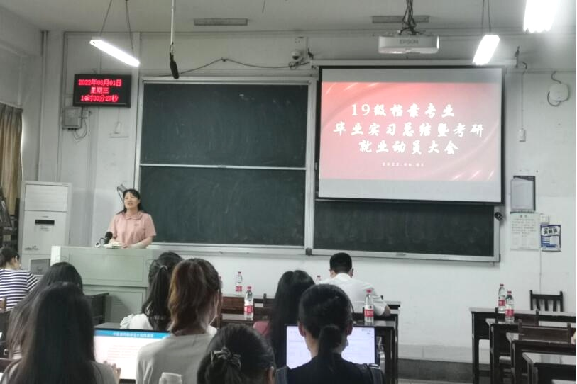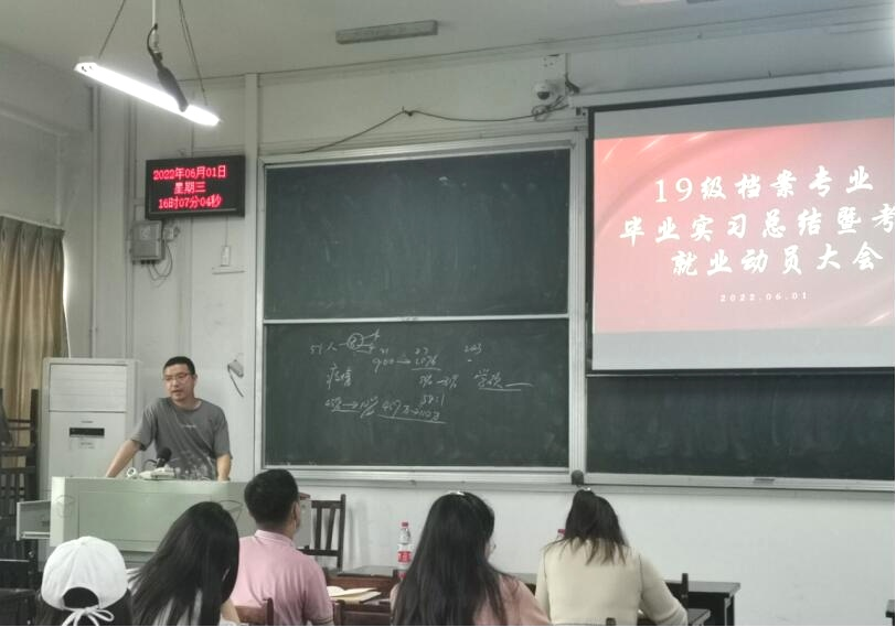 2022年6月1日下午,2019级档案学专业毕业实习总结暨考研就业动员大会在教3-405举行,学院党委书记王义芳、副书记郭仿兰、副院长雷平、档案系主任李彩容、学院教师赵雪芹、胡明想、王英、何强、吕文婷以及19级全体本科生参加会议。会议分两个阶段进行,由班主任李青维主持。
