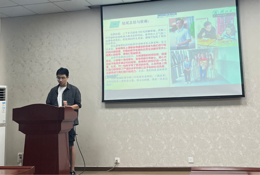 会议首先由各实习小组代表汇报本组的实习情况。王钰榕、戴计晨、夏琼、郑雅、高璐、夏孙熙、杨涵、田彬共8位同学从学校情况、教研工作、学校特色、总结反思等方面进行了总结与汇报。他们结合自身的实习经历,对所在实习点的实习工作内容、实习感悟、能力提升等方面进行了经验分享。