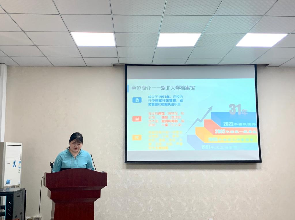 实习分享阶段,十二位实习生代表依次讲述了在青山区档案馆、Intra mirror、湖北省图书馆、湖北日报传媒集团、烽火通信科技股份有限公司、湖北省科技信息研究院、中铁大桥局、中国金茂武汉公司、武汉城市职业学院、太阳成集团图书馆、太阳成集团档案馆、长江航道局等单位的实习经历与心得体会,共享了实习过程中的典型案例,展开交流讨论。