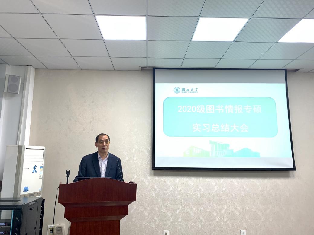 会议总结阶段,付正刚副教授对同学们圆满完成实习任务表示祝贺,对同学们的实习总结深有感触,对大家在实习中提升能力、思维、沟通的感悟非常认同。同时,也提到实习总结大会的作用也表现为:让导师们了解图情专业实践的领域及工作内容;评估专业实践工作安排及专硕培养方案;希望大家通过实习能找到自己的职业兴趣点;把实习实践工作中的理解充实到毕业论文中,并将实习中的积极信息传递给下一届学生。
