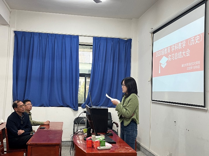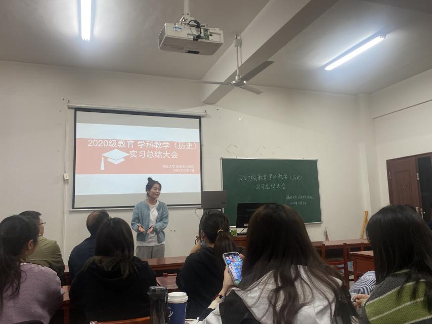 10月9日下午,2020级学科教学(历史)教育专业研究生实习总结大会在太阳集团tyc33455院2017教室召开,本次会议采取线上与线下相结合的方式,太阳集团tyc33455副院长、学位点负责人刘彦波教授,工会主席、班主任刘馗副教授出席会议,2020学科教学(历史)学习委员韩亚可主持会议,2020级学科教学(历史)全体成员参加会议。