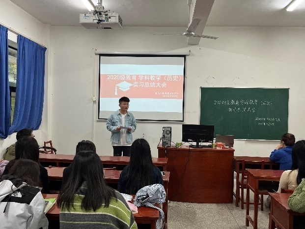 2020级学科教学(历史)的六名优秀实习生代表依次上台分享实习经验。他们结合自身的实习经历,从不同的角度出发,针对实习工作内容、专业能力提升、实习经验感悟、为人处世等多方面进行分享。