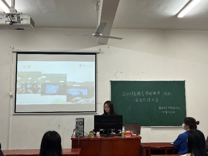 余慧同学则以在武汉市第四十九中学的不同视角,为大家分享了自己在实习过程中的讲课视频和教学设计。