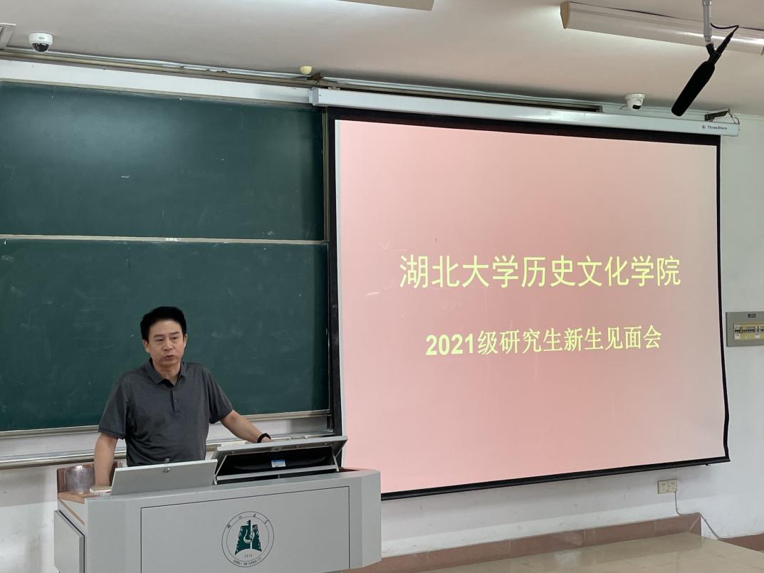 王义芳书记、黄柏权院长、郭仿兰副书记、刘彦波副院长、雷平副院长等学院领导,研究生导师代表覃兆刿教授和学院研究生秘书沈艳老师、辅导员刘娟老师参加了见面会。会议由分管研究生工作的副院长刘彦波教授主持。