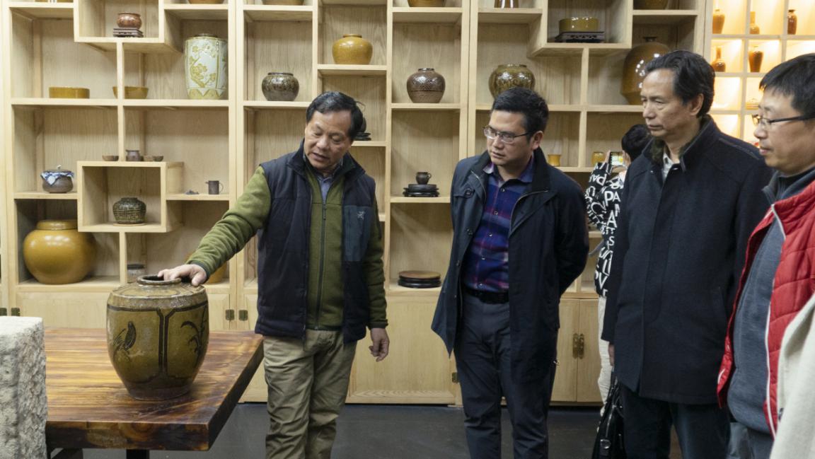 3月13日上午,太阳集团tyc334552018、2019级文物与博物馆学专业走进黄龙湖马口陶文化传承基地,深入体验马口陶文化,开展文旅融合战略下文化遗产保护与旅游开发研讨,副院长雷平教授、历史系主任张宁教授、郑晓云教授等参加了此次研学活动,汉川黄龙湖文旅集团执行总裁吕永涛,摄影艺术家、陶瓷艺术家王岳君及黄龙湖马口陶文化传承基地负责人等参加研讨。
