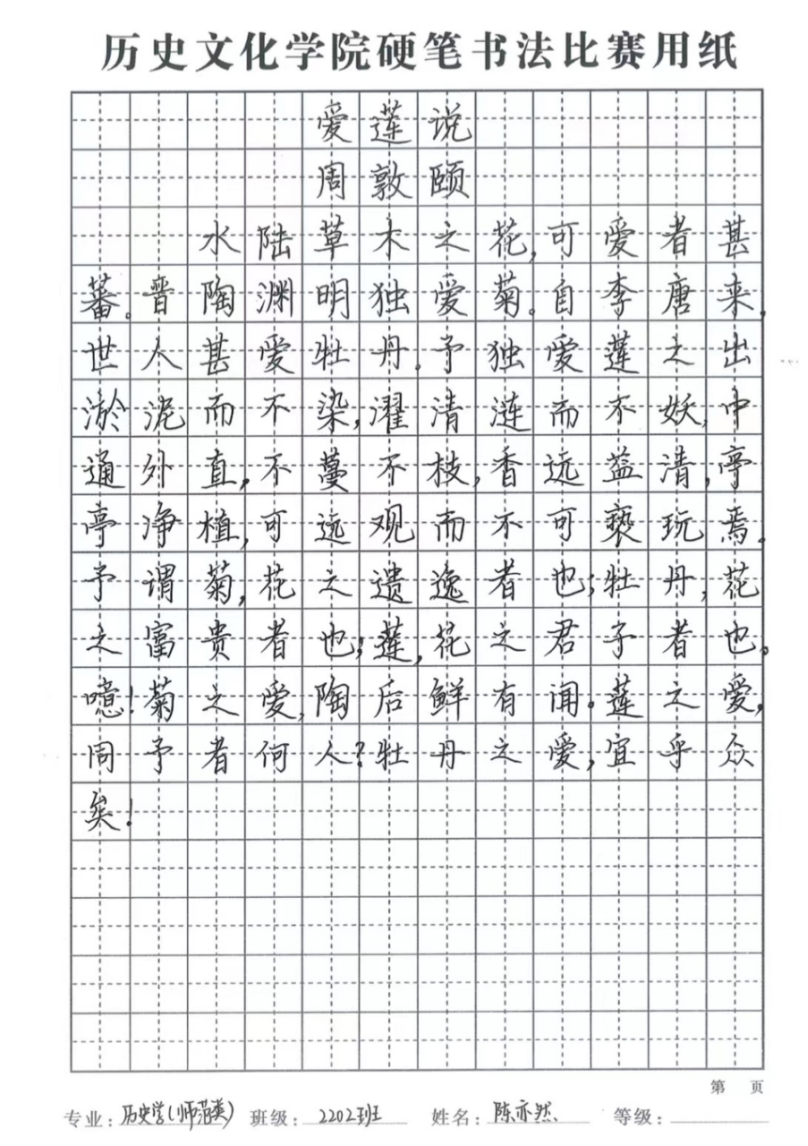 硬笔特等奖:陈亦然(22级历史)