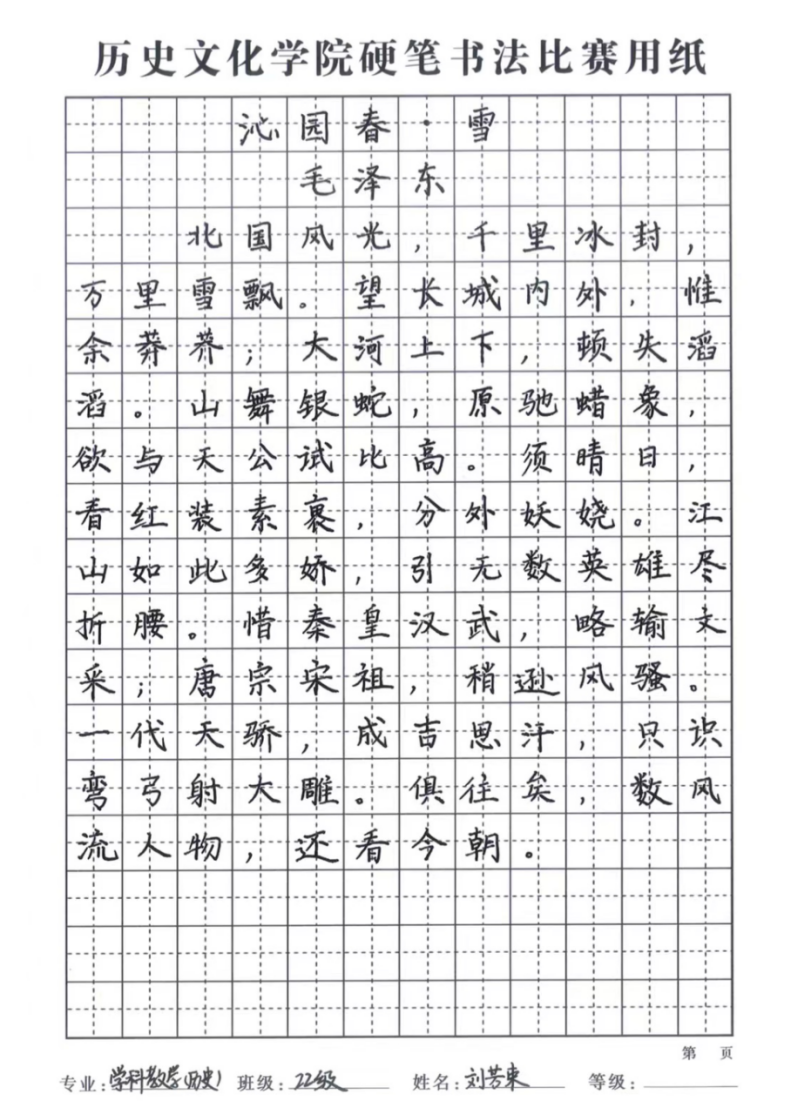 硬笔特等奖:刘佳艺(20级历史)