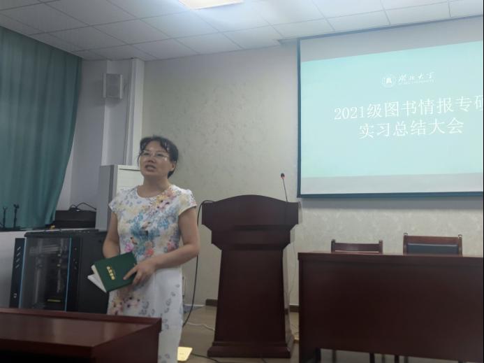 2023年9月20日上午,2021级图书情报专业实习总结大会在逸夫人文楼D座1013会议室召开。学院分管研究生工作的副院长刘彦波教授、档案系主任李彩容副教授、图书情报专硕导师代表王英副教授、2021级图书情报专硕研究生参加了此次会议。会议由图书情报专硕研究生班主任吕文婷老师主持。