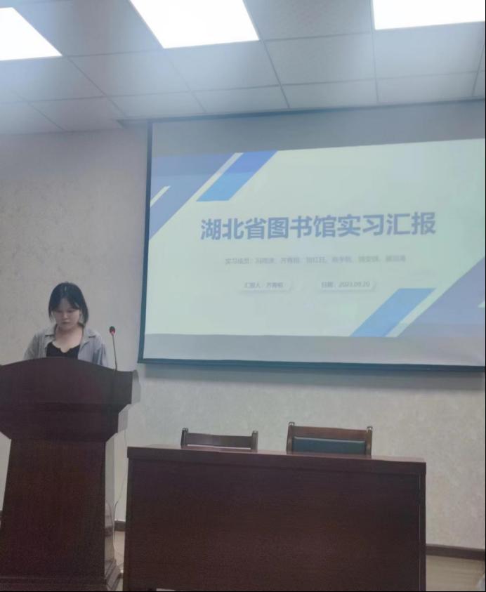 实习分享阶段,十位实习生代表依次讲述了在青山区检察院、中国金茂武汉公司、湖北省科技信息研究院、湖北省退役军人事务厅、湖北省档案馆、湖北省图书馆、太阳成集团档案馆、太阳成集团图书馆、烽火集团、太阳成集团继续教育学院等单位的实习经历与心得体会,共享了实习过程中的典型案例,总结经验,反思不足,展开交流讨论。