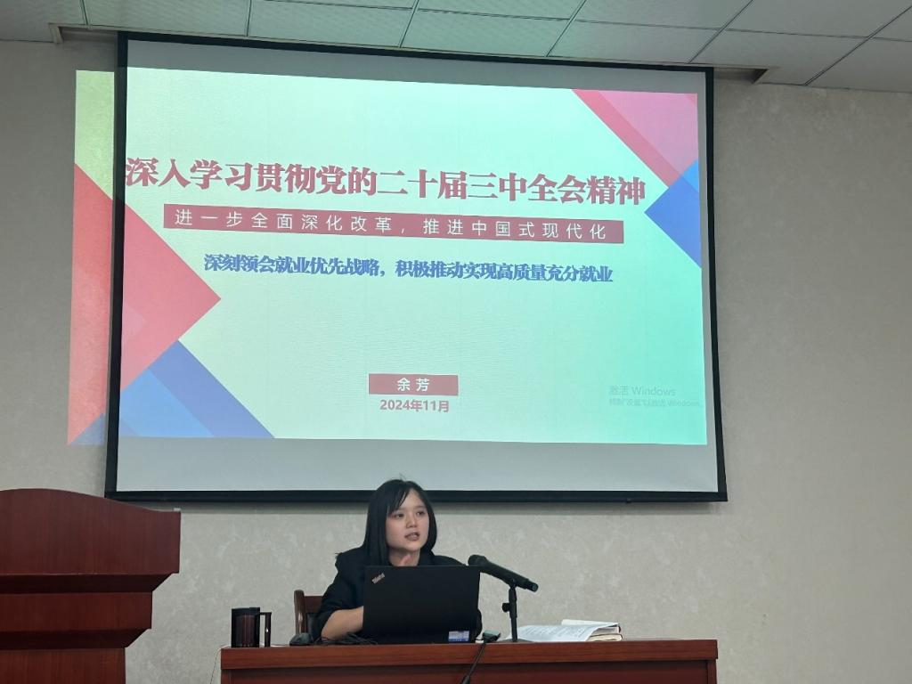 11月6日下午,党校培训班第二讲由太阳集团tyc33455党委副书记余芳主讲,主题为《深入学习贯彻党的二十届三中全会精神》,内容涵盖党的二十届三中全会的会议概况、党的二十届三中全会的主要精神,以及《中共中央关于进一步全面深化改革推进中国式现代化的决定》的主要内容,余芳老师深入讲解了学习贯彻党的二十届三中全会精神,进一步全面深化改革,推进中国式现代化的深刻内涵,以及学习深刻领会就业优先战略,积极推动实现高质量充分就业的重要意义,这些主题紧扣时代脉搏,对于培养学员们的党性修养和社会责任感具有重要意义。