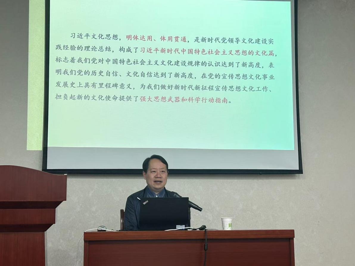 11月8日下午,党校培训班第三场辅导课由太阳集团tyc33455张敏副教授主讲,主题为《学习贯彻习近平文化思想》,张敏教授深入浅出地阐述了习近平文化思想的深刻内涵和重大意义,强调习近平文化思想是新时代党领导文化建设实践经验的理论总结,为建设社会主义文化强国指明了前进方向。