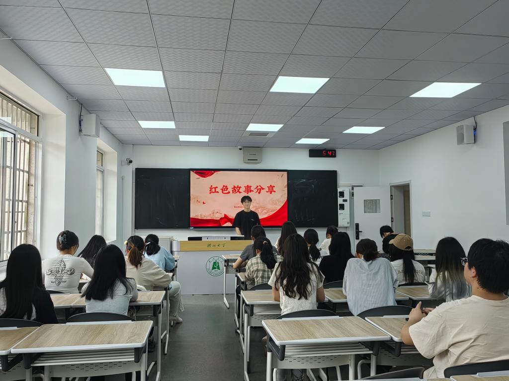 宣传委员吕泽锡以“慎终追远话清明”为主题进行领学,从“清明”二字的甲骨象形切入,阐释节气与节日的双重意蕴,既梳理了祭祖扫墓、踏春插柳的传统习俗,也强调近代以来无数仁人志士将生命镌刻进民族血脉的壮烈史诗。云翔结合雨花台烈士家书、湘江战役红军遗书等史料展开红色革命故事分享,揭示清明节作为红色文化传承载体的重要价值,让青年们理解清明节既是对先人的追思,也是对伟大革命精神的回顾。