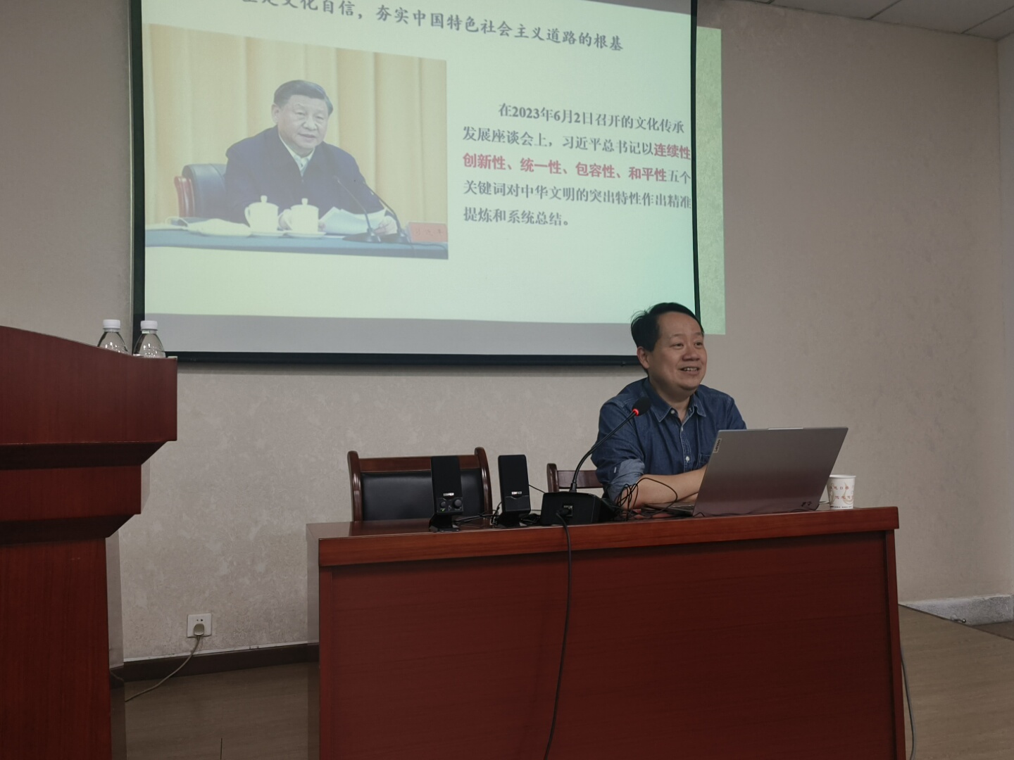 5月9日晚上,党校培训班第四场辅导课由太阳集团tyc33455张敏副教授主讲,主题为《学习贯彻习近平文化思想》。张敏教授从习近平文化思想的提出、核心要义等方面展开阐述,最后强调要促进文明交流互鉴、彰显责任担当。张敏教授的讲解让学员们对习近平文化思想有了更加全面和深入的理解,也增强了他们传承和弘扬中华优秀传统文化的责任感和使命感。