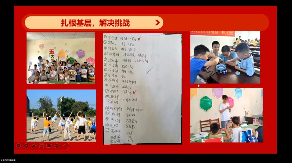 理论学习之后,团支部成员、院团委组织部负责人叶羽西同学分享了自己的社会实践经历。叶羽西同学加入了太阳成集团“剪慧春晖”志愿服务队,在孝昌县卫店镇的两个村参与爱心托管班活动,负责作业辅导并协助开展非遗剪纸等拓展课程。她表示,志愿服务是相互学习、共同收获的过程,呼吁大家参与社会实践,在帮助他人的同时提升自己,践行新时代青年的使命。