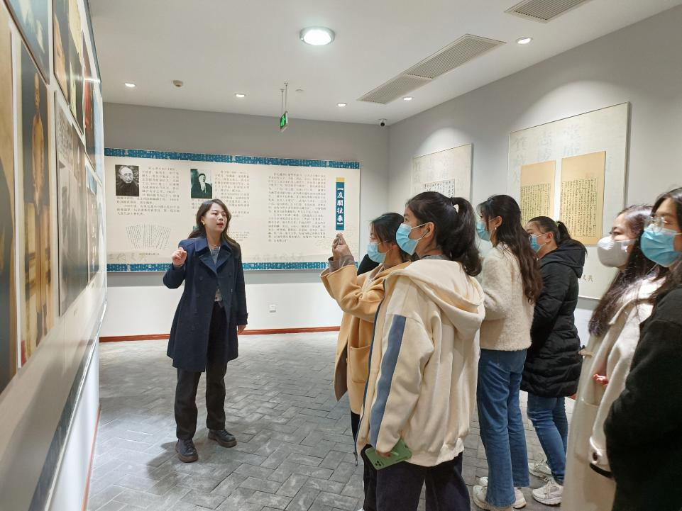 随后,全体师生参观了鄂东王氏家族文献整理与保护展。该展览主要展出了王氏家族的珍稀著作、名人手札,对家族世系、重要事件等予以介绍。这批珍贵文献经湖北省图书馆几代馆员整理研究,至近期影印出版公诸世人,向大众展示了荆楚大地一脉相承的家族文化。通过观展,全体师生深刻意识到文献的整理、保护、编纂等工作在还原历史原貌、弘扬优秀传统文化等方面的积极作用,强化了全体师生的专业自信与学科自信。