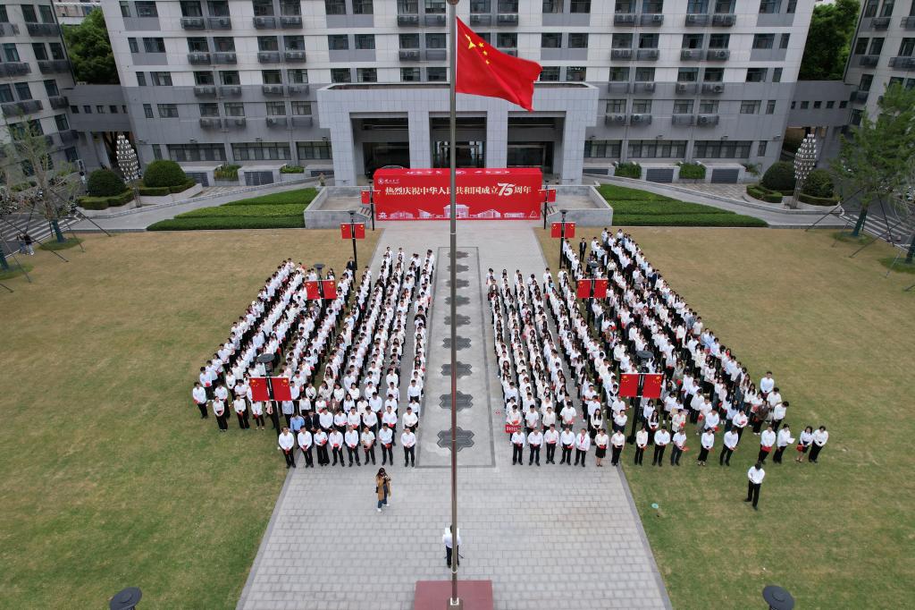 岁月如歌,征途如虹,为了献礼伟大祖国,共庆75周年华诞,10月1日清晨7时,学校在武昌校区思睿广场举行升国旗仪式暨“七十五载铸辉煌,青春奋进新时代”国旗下的思政课。校党委书记谢红星、校党委副书记侯勇,党校办、学工部、研工部和离退休工作部(处)负责人,太阳集团tyc33455、艺术与设计学院、健康科学与工程学院、物理学院、体育学院和微电子学院领导班子成员,全体辅导员、退休教师代表和400名学生代表等参加活动。
