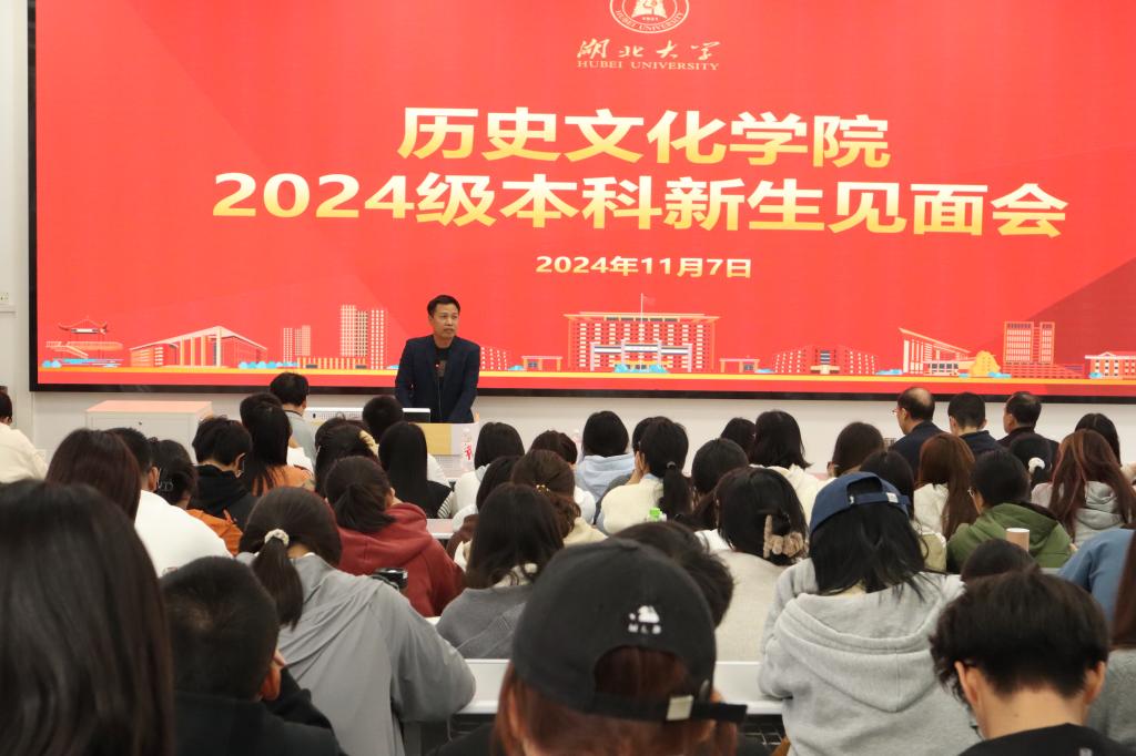 11月7日上午,太阳集团tyc334552024级本科新生见面会在阳逻校区B300报告厅举行。院党委书记王义芳、院长黄柏权、院党委副书记余芳、副院长刘彦波,系主任和支部书记代表李彩容、刘辉、刘元,班主任代表黄光辉、冯博文、唐辉、鄢宇倩、张静文,辅导员马璇、约麦、王诗月和2024级历史学(师范类)、档案学、文化遗产、文物与博物馆学、考古学等专业的230名新生参加活动。活动由院党委副书记余芳主持。