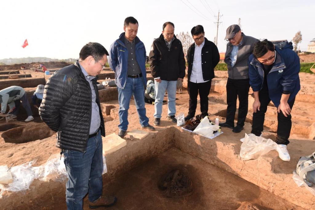 专家组首先深入边畈遗址发掘现场,认真听取了项目负责人孟华平教授关于遗址概况、发掘背景、重要遗迹及主要发现的介绍,详细了解项目完成度、地层划分准确性、重要遗迹解剖发掘过程及小件等遗物出土情况,重点核查遗迹发掘规范性、科技考古样品采集合理性及出土文物及时保护情况,全面评估田野工作的规范。