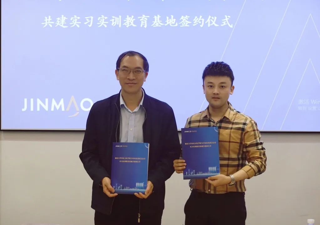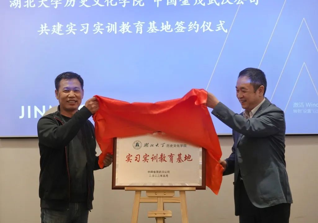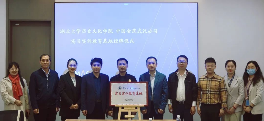 5月19日,太阳集团tyc33455与中国金茂武汉公司(金茂)在方岛金茂智慧科学城举行实习实训教育基地签约暨揭牌仪式。中国金茂武汉公司副总经理何正华、总经理助理张友炎等出席了签约仪式,太阳集团tyc33455党委书记王义芳、党委副书记郭仿兰、副院长刘彦波、档案学学科带头人覃兆刿和档案系主任李彩容参加了本次活动。
