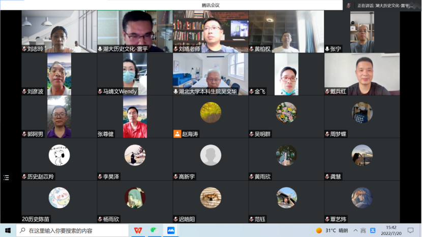 7月20日,我院第三届“荆楚卓越教师协同育人计划”线上训练营正式开班。本科生院院长吴文华教授、副院长吴明群,来自中学的6位校外指导老师、我院领导和部分教师以及2020级历史学师范专业全体学生参加了开班仪式。开班式由副院长雷平教授主持。