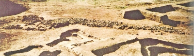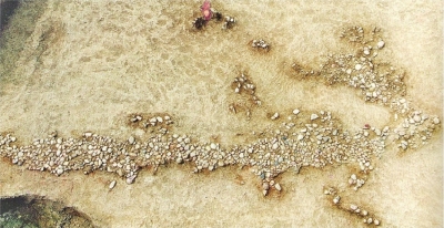 距今约8000年的辽宁阜新查海遗址石堆塑龙。