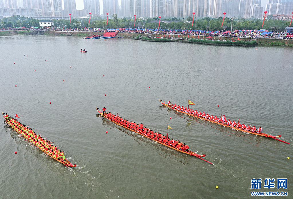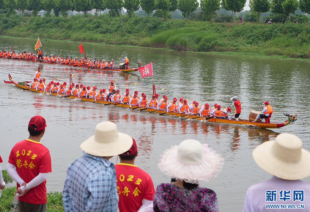 图为东坡庙会·2023武穴市端午节传统龙舟赛。新华网发 余涛摄